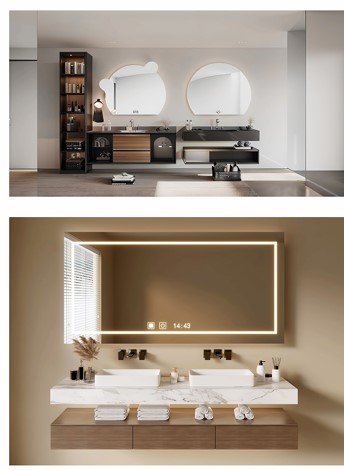 Luxury Solid Wood Bathroom Drawer Storage Vanity Cabinet With Half Moon Mirror Wash Basin for Hotel Bathroom